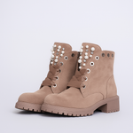 Leana™ combina o charme das pérolas com o brilho discreto das aplicações de cristais, num botim de cano curto com acabamento polido. O interior macio e a sola estável garantem bem-estar a cada passo — perfeito para elevar o casual ou fechar um look de festa com elegância.