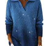 A FALKA™ é uma camisola de malha criada para mulheres que gostam de peças sofisticadas, femininas e com detalhes únicos. O colarinho estilo polo dá um ar moderno e elegante, enquanto o padrão inspirado num céu estrelado traz um charme especial e delicado — perfeito para dar destaque ao look sem exageros.