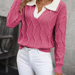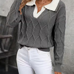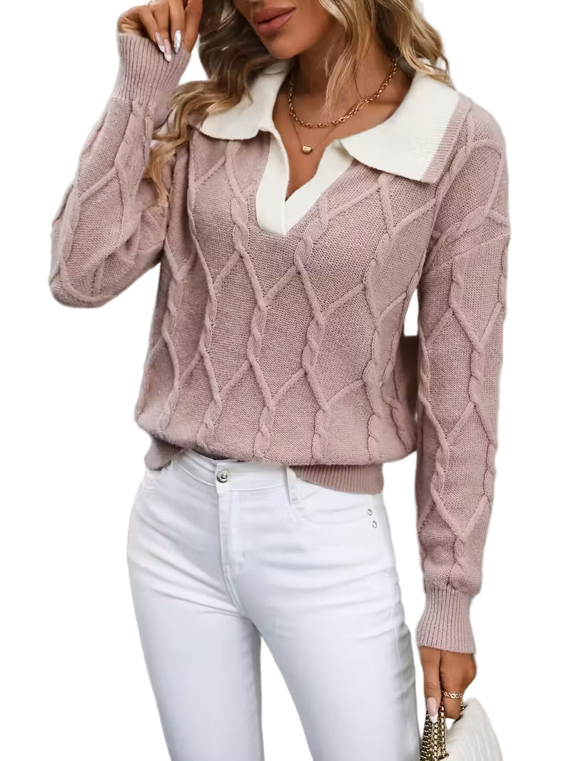MAHALIA™ – CAMISOLA DE MALHA TRANÇADA COM GOLA