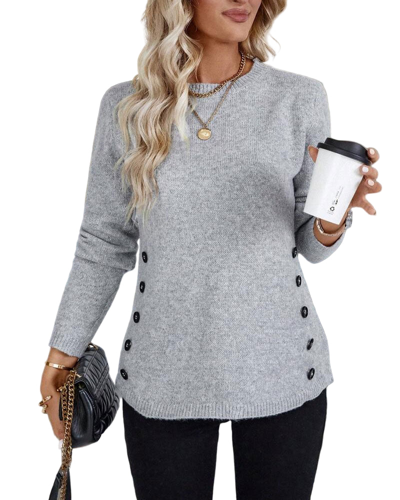 Valentina™ é a camisola perfeita para o dia a dia. O detalhe dos botões adiciona um toque delicado ao design simples e elegante, tornando-a uma peça versátil que combina conforto e estilo em qualquer estação.