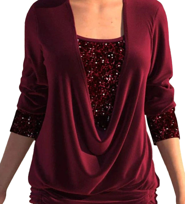 FÁTIMA™ - CAMISOLA FEMININA DE MANGA COMPRIDA COM PAETÊS