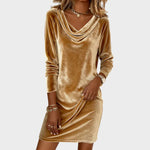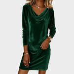 Este vestido curto em tecido suave e brilhante é a escolha perfeita para quem quer aliar conforto e glamour. O decote drapeado acrescenta um toque sofisticado e feminino, enquanto o corte ajustado realça a silhueta com subtileza e elegância.