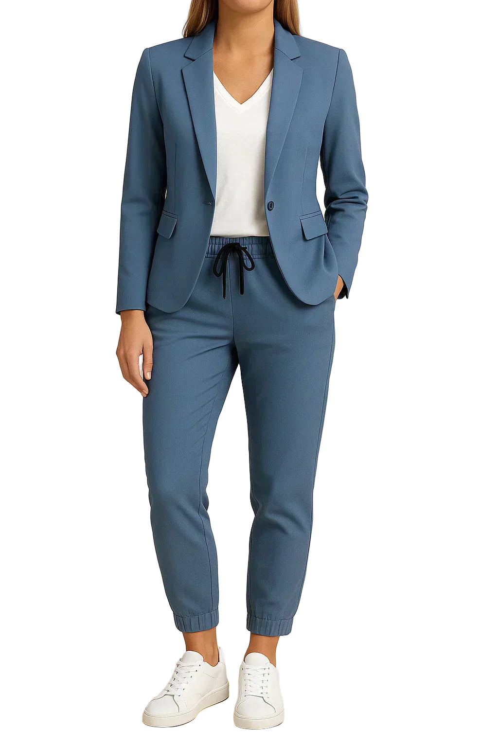 Anastazia™ é o conjunto que une corte de alfaiataria e conforto inteligente para um visual polido sem esforço. O blazer estruturado e as calças de caimento fluido criam linhas alongadoras e versáteis — perfeitas para trabalho, eventos ou jantares em que quer transmitir elegância contemporânea.