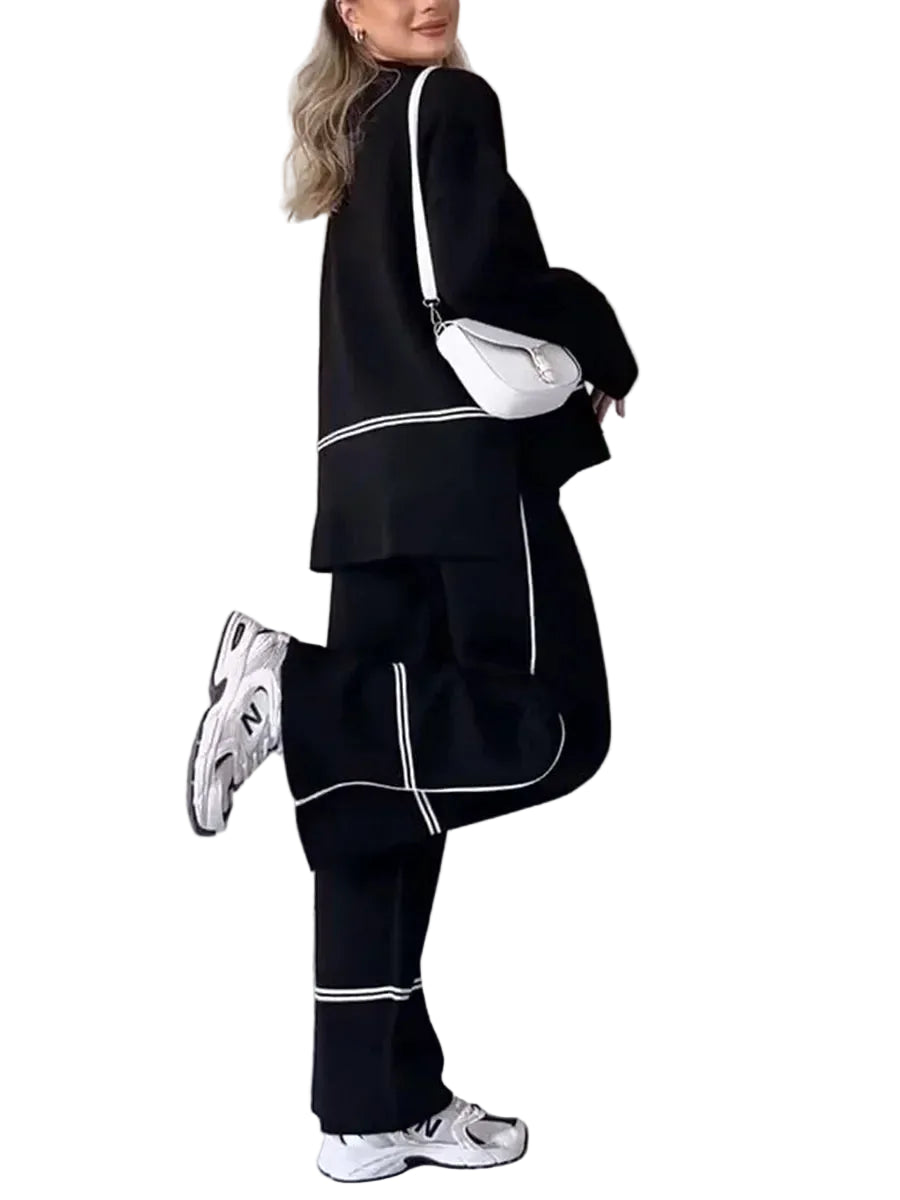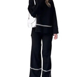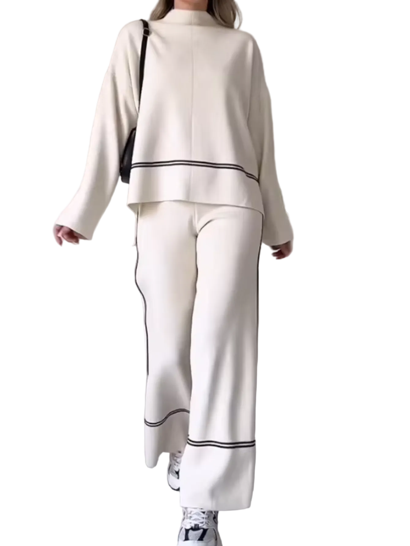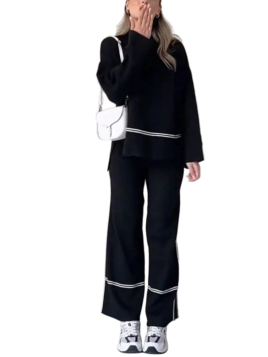 O RITA™ é um conjunto de malha pensado para mulheres que procuram um look sofisticado, aconchegante e fácil de usar. A camisola de gola alta com recortes em painéis confere um toque moderno e distinto, enquanto as calças de perna larga proporcionam conforto e movimento, criando um conjunto harmonioso e elegante para qualquer ocasião.