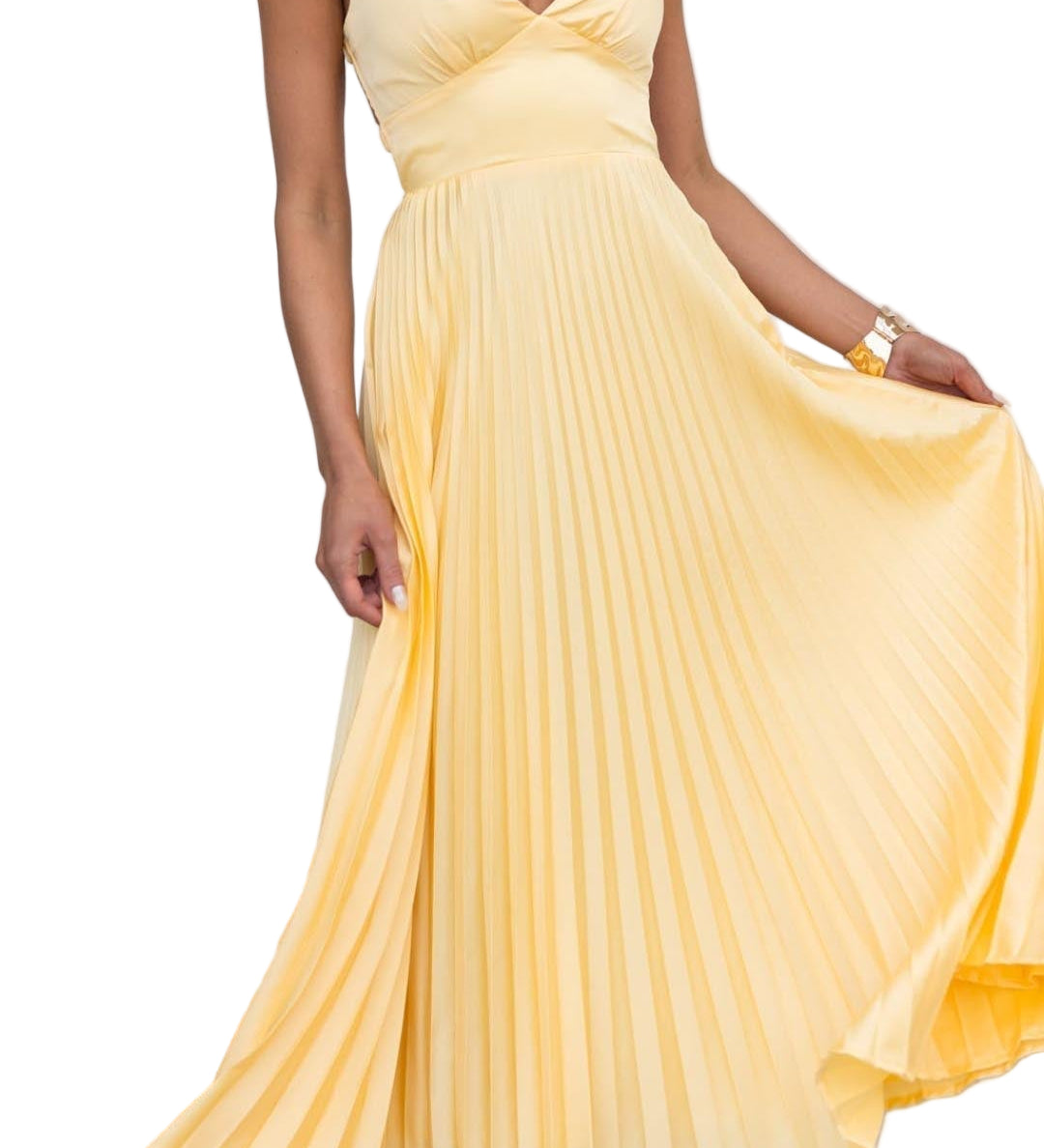 ABBY™ – VESTIDO MAXI PLISSADO AMARELO