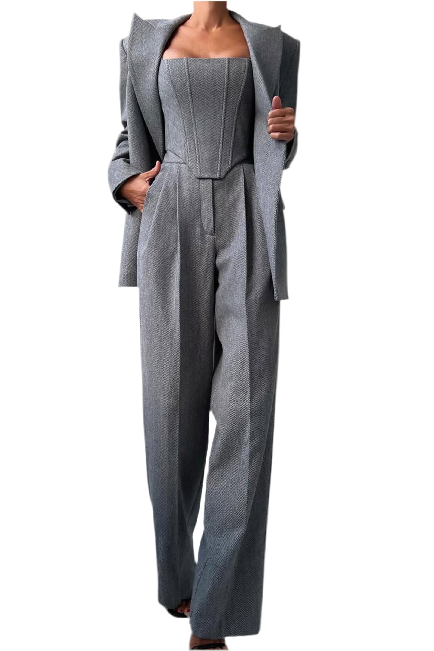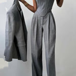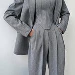Dolce™ simplifica o styling com sofisticação imediata. O conjunto traz top, casaco leve e calças de corte reto com caimento fluido e toque macio, criando um visual coeso que vai do casual chic ao elegante — usa junto para impacto ou separa as peças para multiplicar combinações.