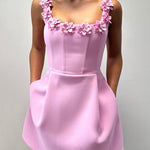 Cindy™ é o vestido mini que combina frescura e feminilidade num design irresistível. As aplicações florais em relevo dão textura e presença, enquanto o corte curto e o caimento leve garantem um visual moderno — perfeito para encontros, eventos ao ar livre e noites especiais.