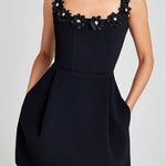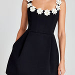 CINDY™ – VESTIDO MINI FEMININO COM APLICAÇÕES FLORAIS