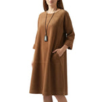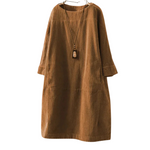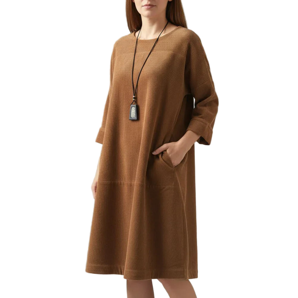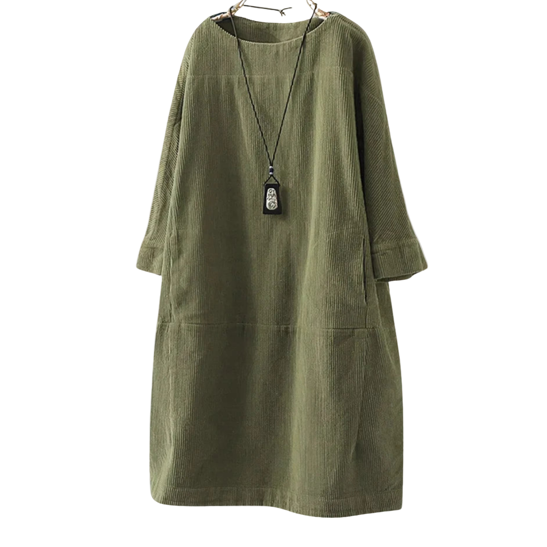 O EMA™ é um vestido midi em corduroy com um design descontraído e elegante. A textura suave traz um toque acolhedor, enquanto o corte relaxado garante liberdade de movimento e estilo sem esforço. Perfeito para o dia a dia, trabalho ou momentos mais casuais — sempre com um visual moderno e feminino.