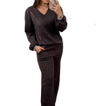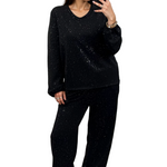 O BRUNA™ é um conjunto pensado para quem adora um toque de glamour sem perder o conforto. Com tecido suave, detalhes em glitter subtil e um caimento moderno, é a escolha perfeita para eventos, jantares, festas ou simplesmente para sentir-se especial no dia a dia.