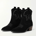 Dallas™ é o par que traz o espírito do faroeste para o dia a dia com elegância. Feitas em camurça macia, estas botas apresentam bico ligeiramente pontiagudo, salto médio e costuras inspiradas no clássico estilo cowboy. O equilíbrio perfeito entre ousadia, conforto e estilo — ideais para elevar qualquer look com personalidade.